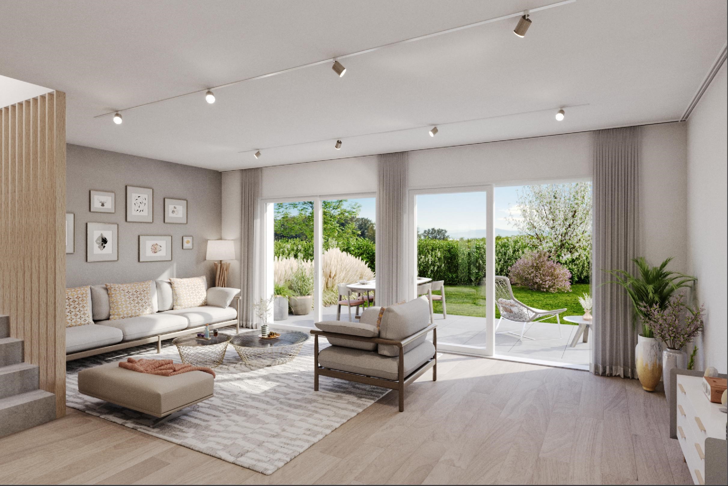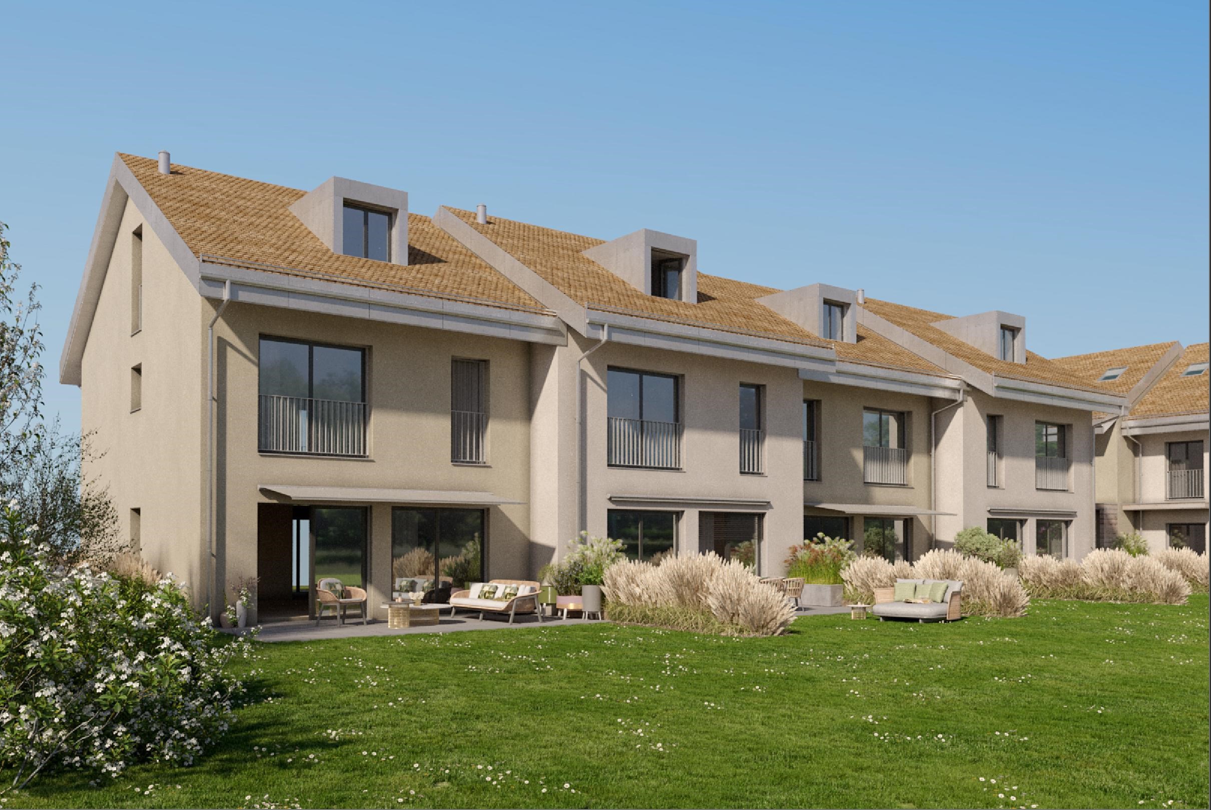 À Founex, dans le canton de Vaud, LEGATO EG assure la construction complète d’un ensemble résidentiel composé de six villas contiguës.