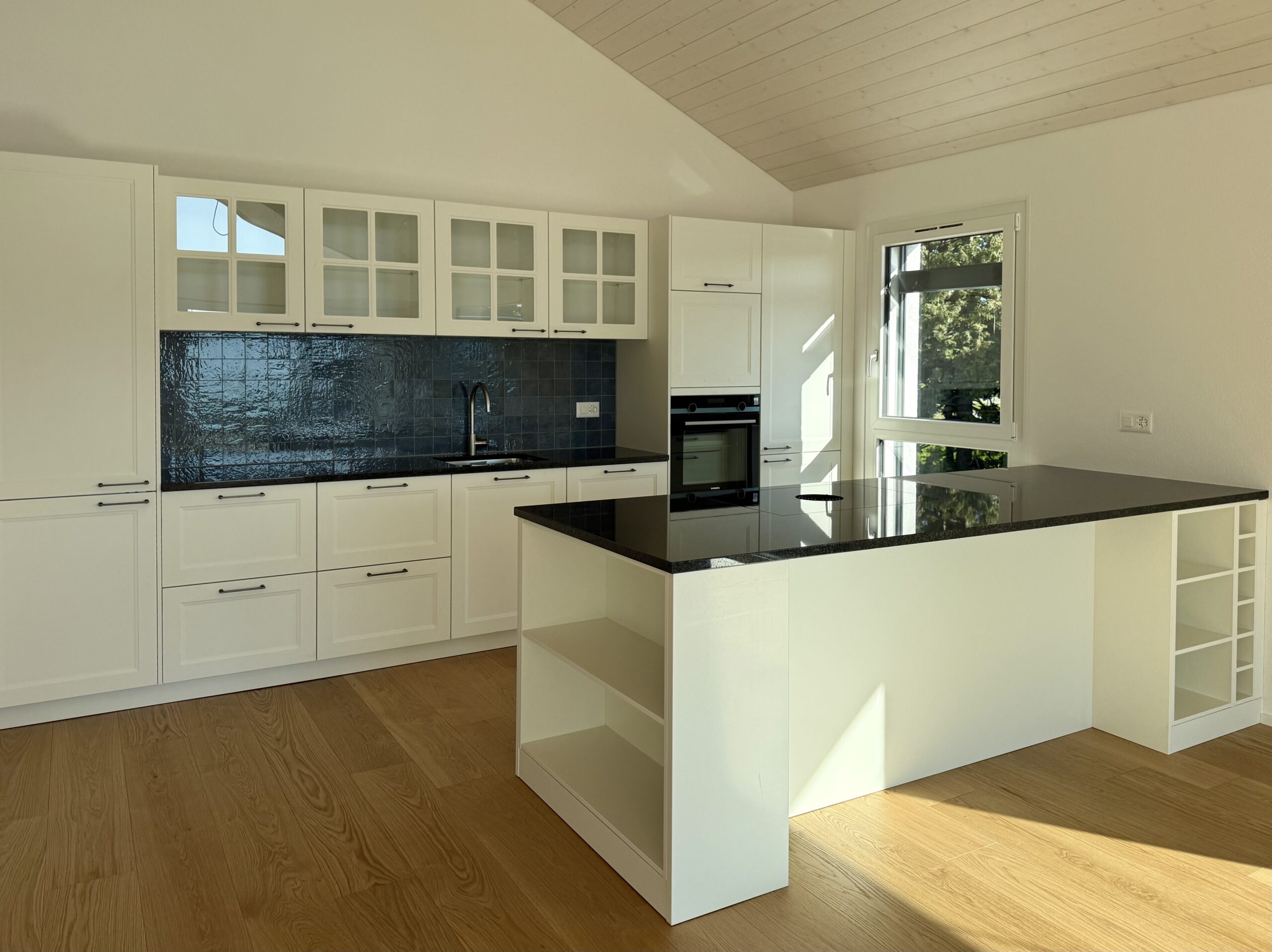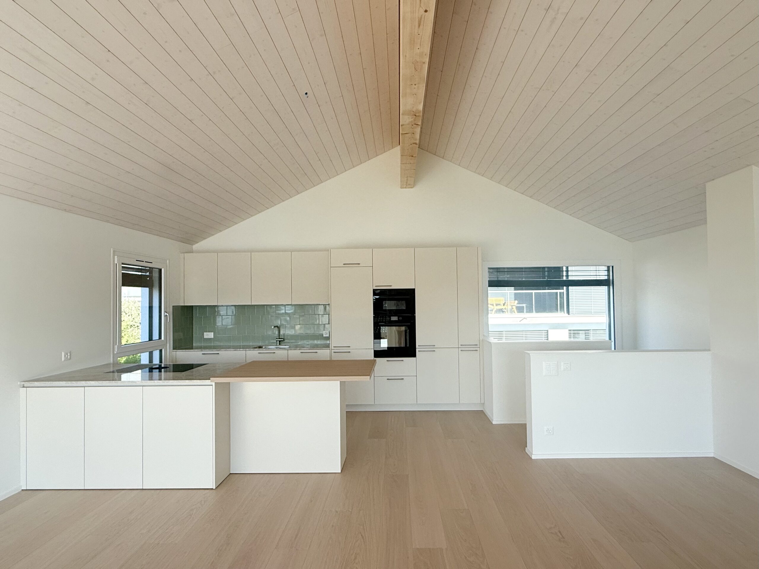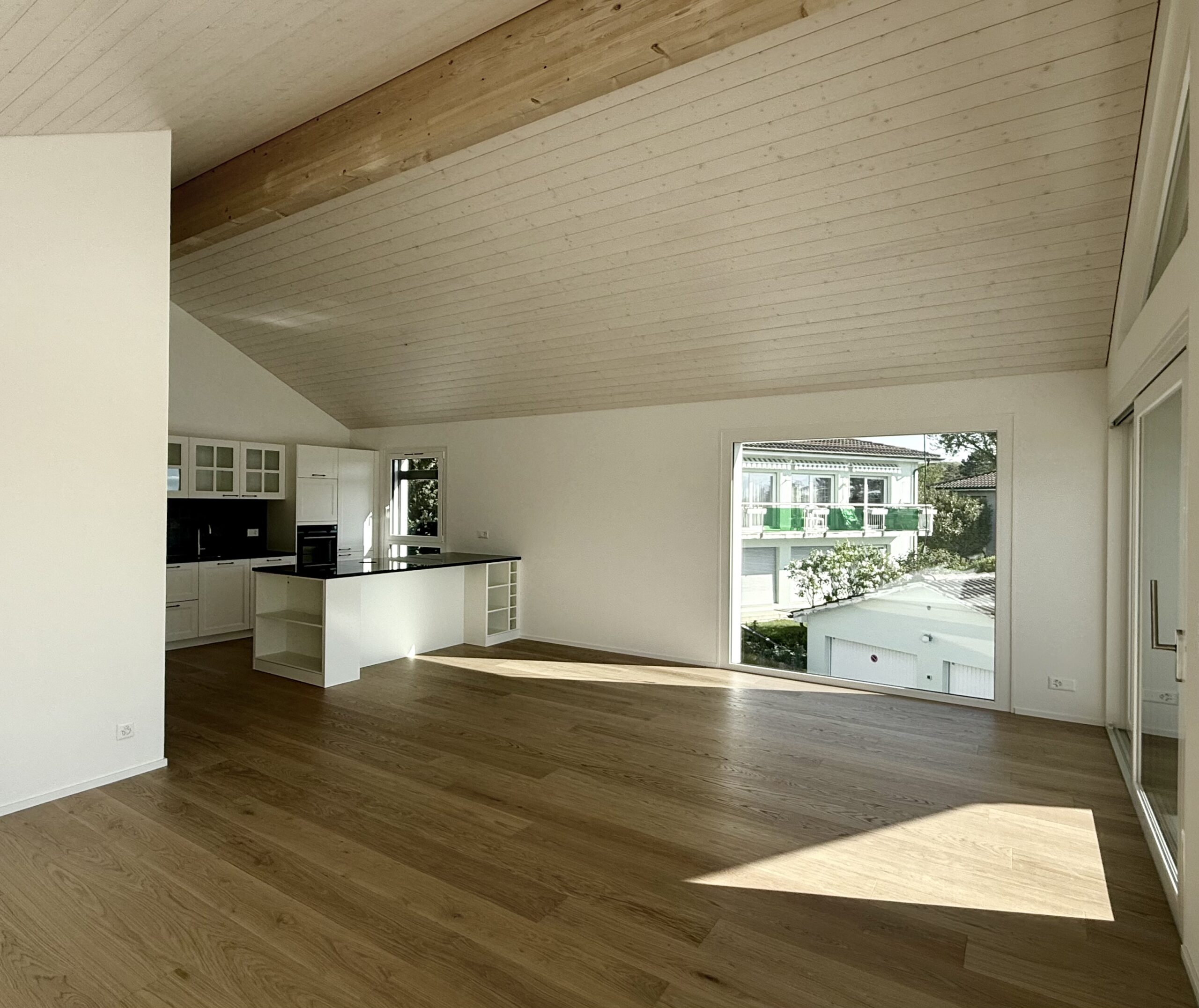 De grandes baies vitrées et une vaste terrasse ensoleillée prolongent l’espace intérieur, créant un lieu de vie lumineux, ouvert et harmonieux.